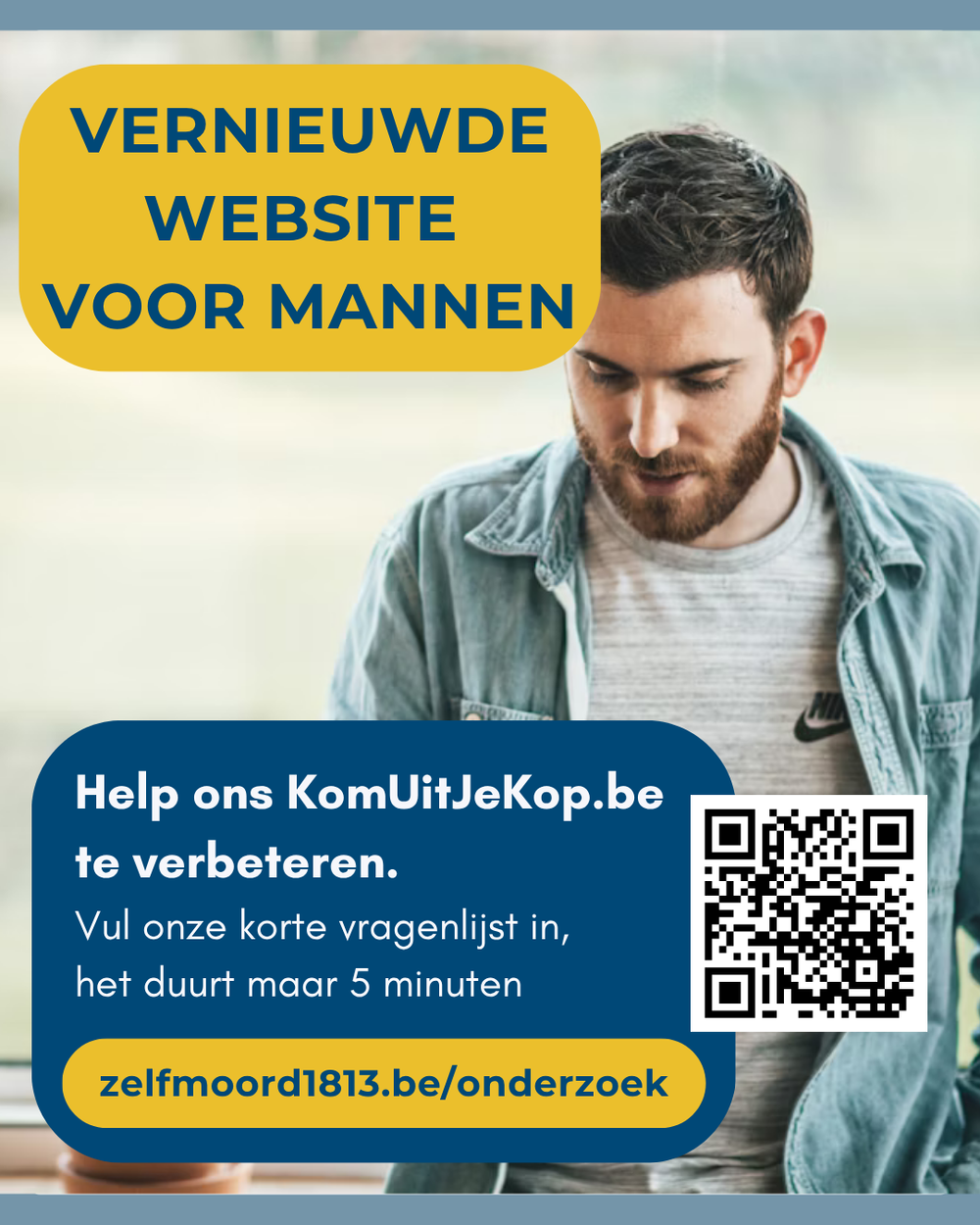 “Kom uit je kop” wil psychische problemen bij mannen uit de taboesfeer halen en mannen (en hun omgeving) aanmoedigen 'uit hun kop' te komen en hulp te zoeken op de manier die het best bij hen past.