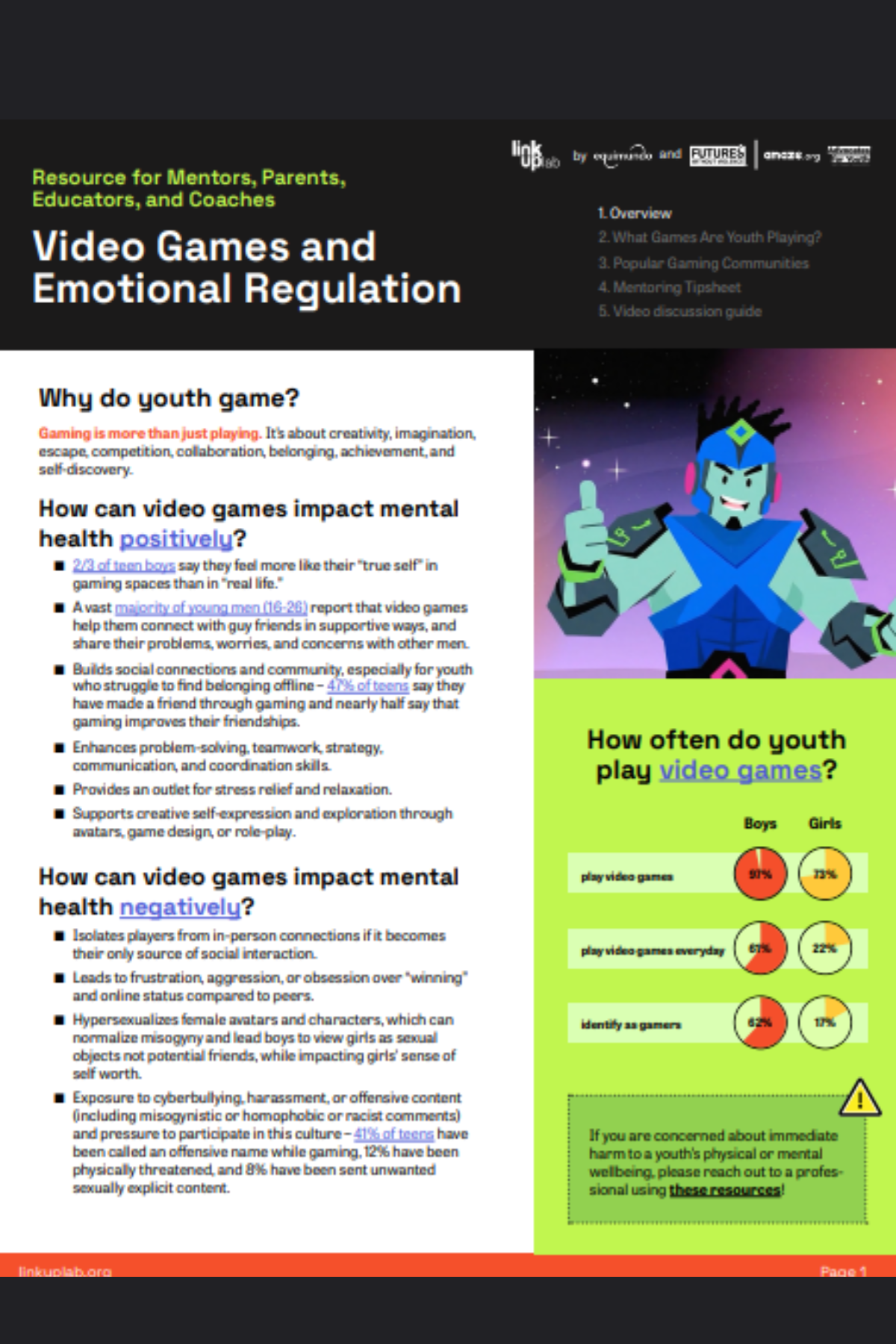Naast sport en cultuur is ook gamen een belangrijke vrijetijdsbesteding. Hoewel steeds meer vrouwen gamen, besteden vooral jongens en mannen tijd aan videogames. Gamen heeft zowel voor- als nadelen. Het kan een plek zijn om vrienden te maken, online contact te houden, samen plezier te hebben en te ontspannen.